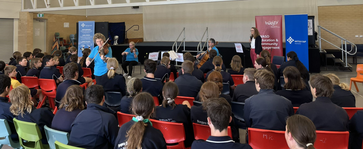 Mitsui E&P Australia and Beach Energy were delighted to sponsor the West Australian Symphony Orchestra (WASO) Dongara Education Program which brought WASO’s Education and Community Engagement team to Dongara District High School last week.