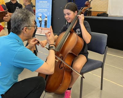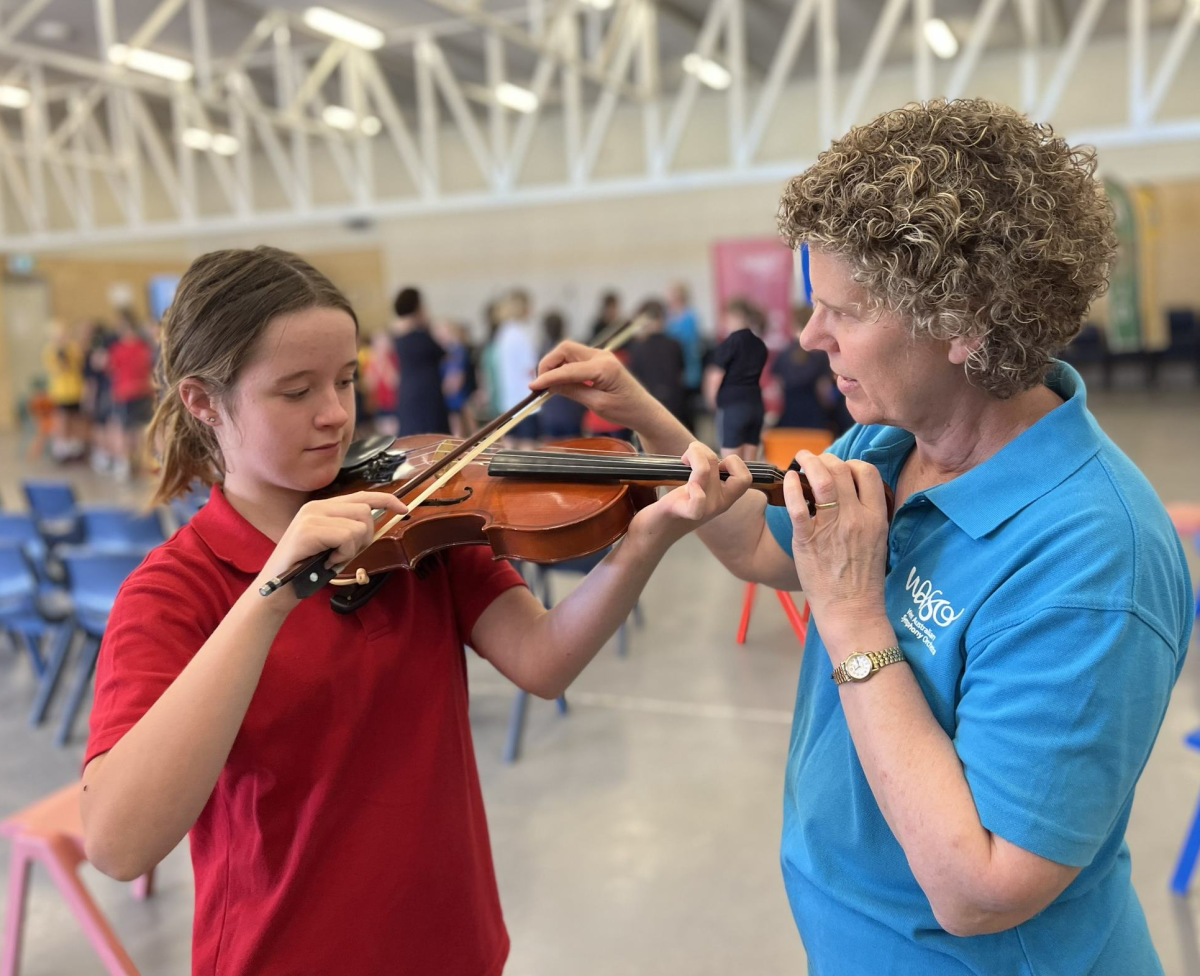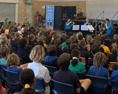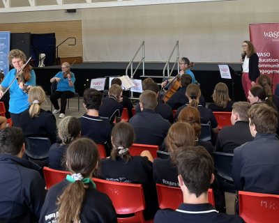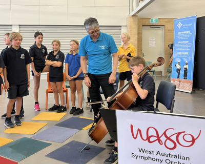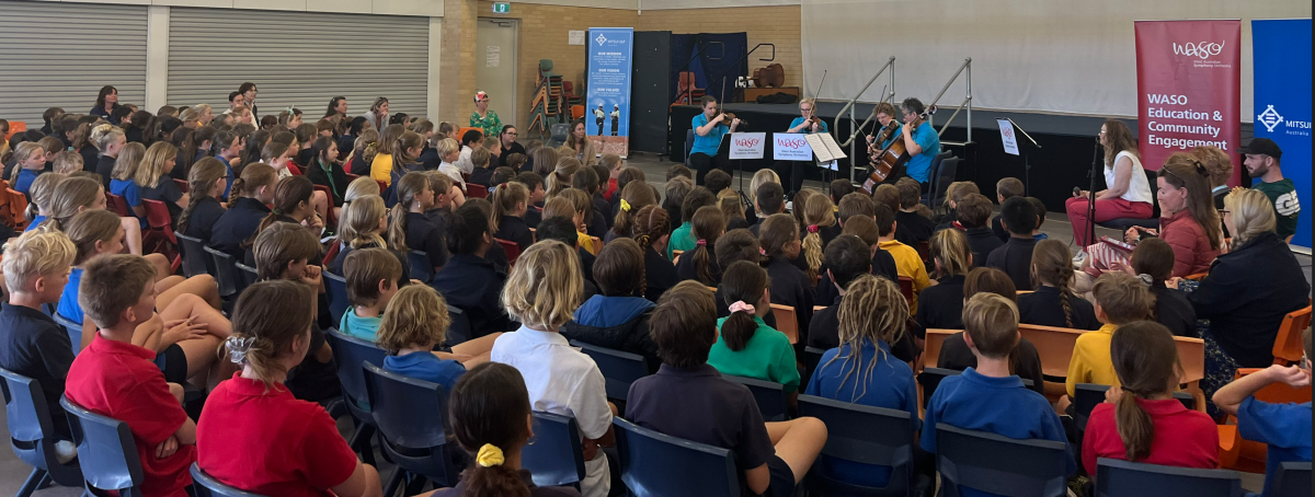 WASO’s String Quartet Ensemble engaged with more than 300 primary and secondary students through performance and ‘have a go’ activities post-concert, giving students the opportunity to try playing a violin, viola or cello.